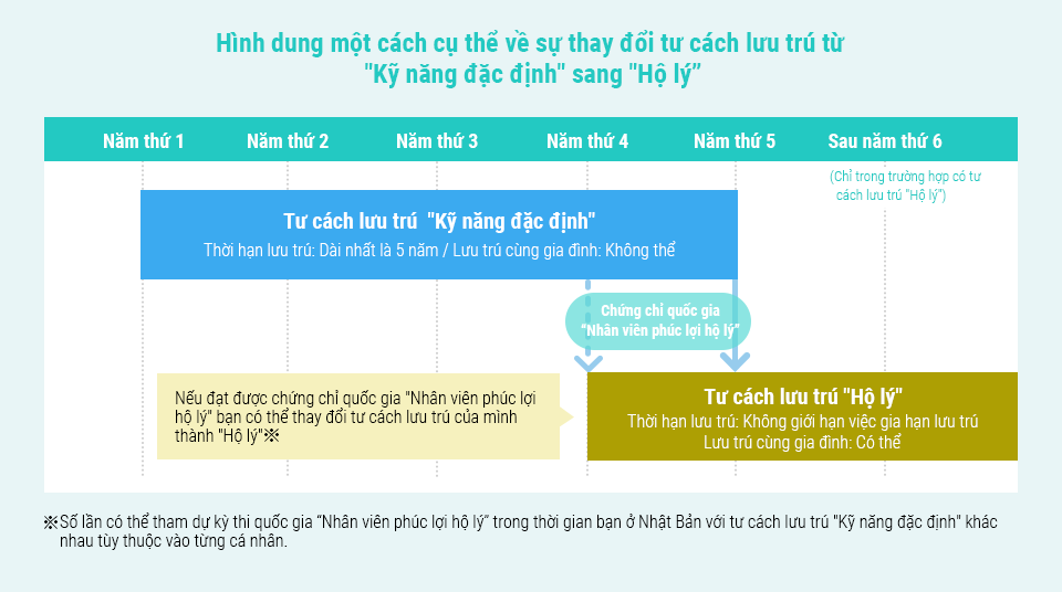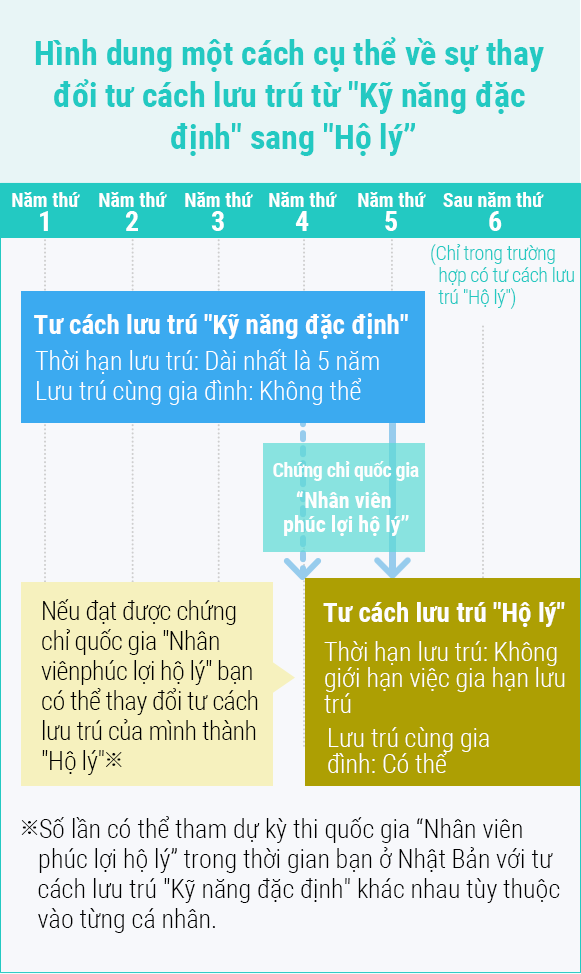 có thể lấy chứng chỉ nhân viên phúc lợi hộ lý (có chứng chỉ Hộ lý quốc gia)và chuyển sang visa Hộ lý